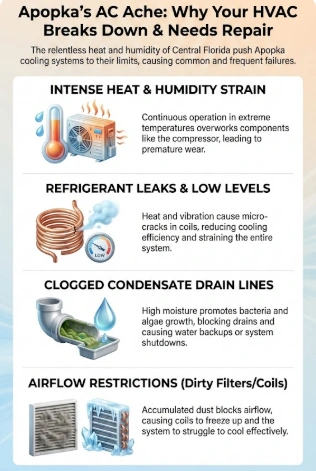 Most HVAC breakdowns in Apopka share a common origin: delayed maintenance meeting relentless climate demands.